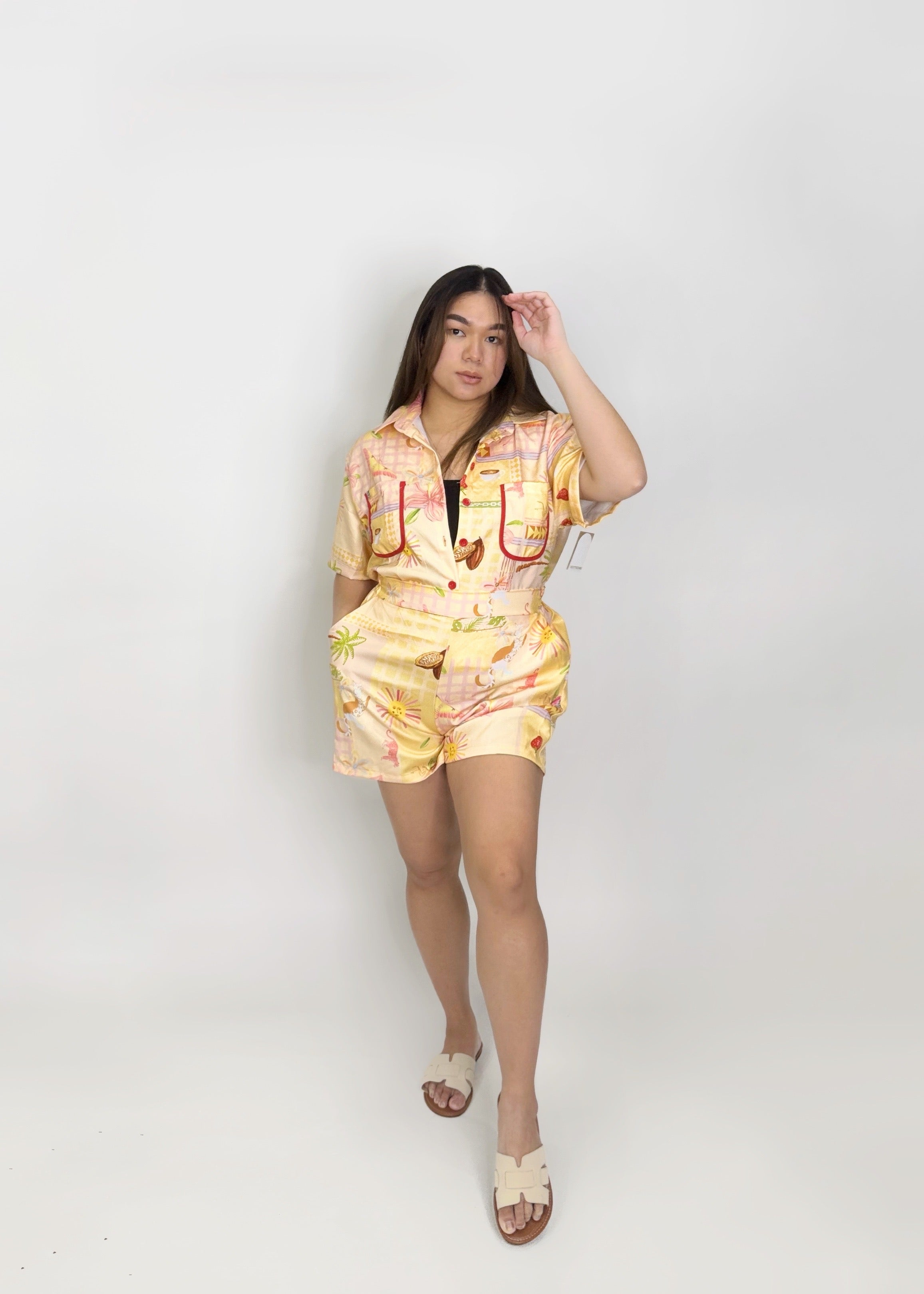 A lightweight and breathable summer set designed for easy, everyday wear. The relaxed button-down top and comfy elastic shorts make this the perfect warm-weather outfit for lounging, errands, or casual days out. Soft, airy, and effortless to style.